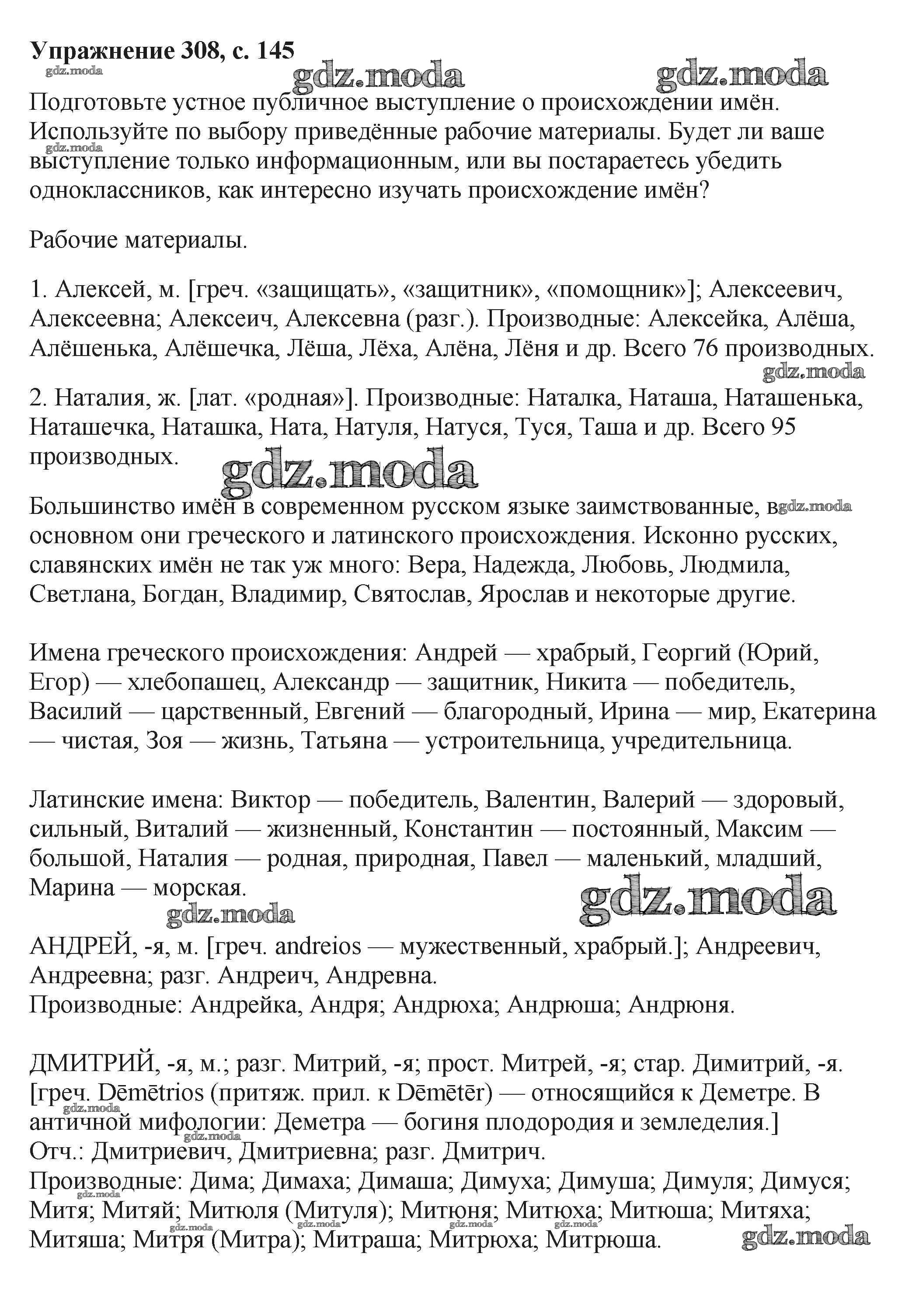 ОТВЕТ на задание № 308 Учебник по Русскому языку 6 класс Баранов