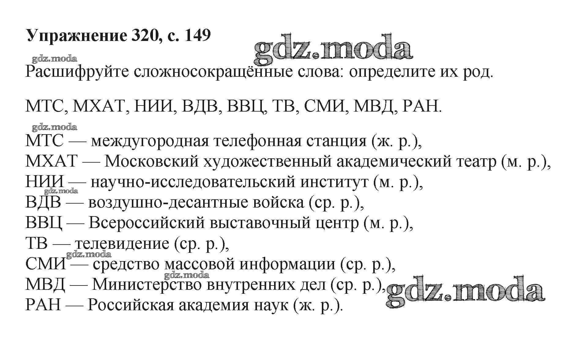 ОТВЕТ на задание № 320 Учебник по Русскому языку 6 класс Баранов