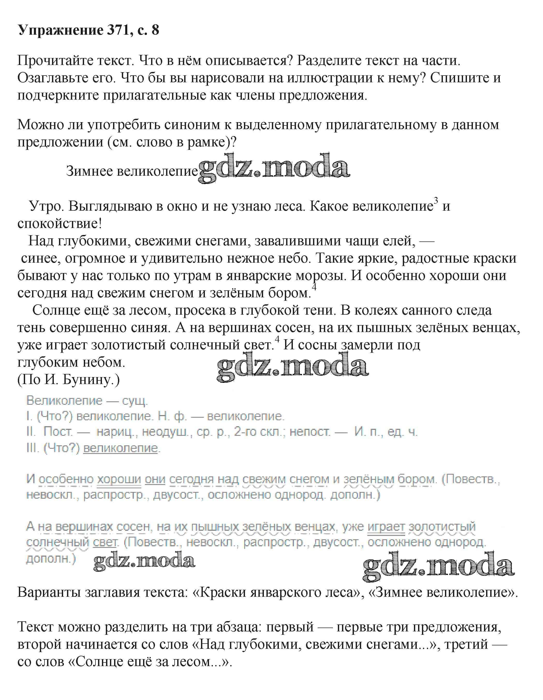 ГДЗ решение к заданию № 371 Русский язык 6 класс Баранов М.Т. Просвещение, Просвещение 2015, 2022 Часть 1, Часть 2 ФГОС бесплатно на гдз.мода!