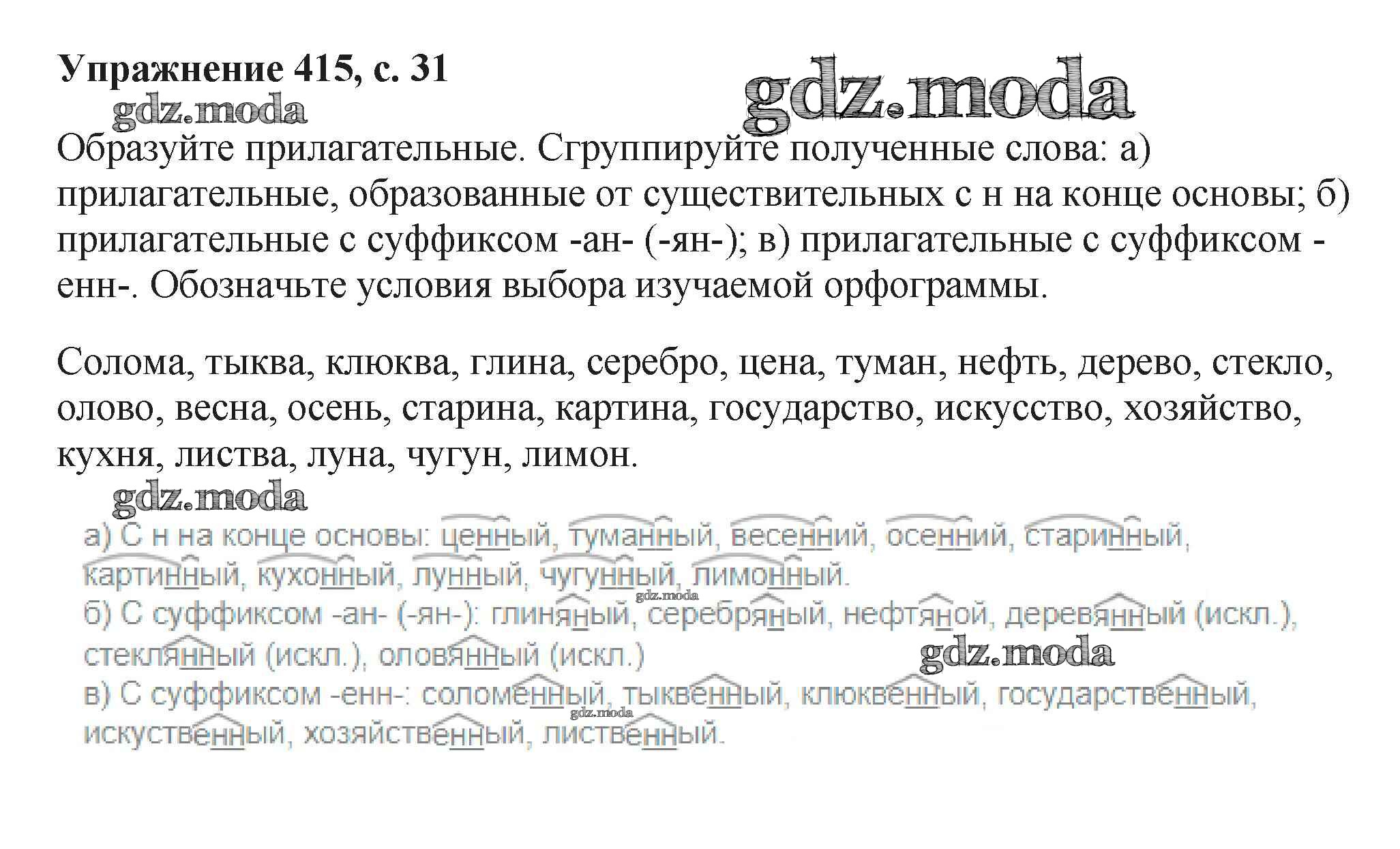 ОТВЕТ на задание № 415 Учебник по Русскому языку 6 класс Баранов