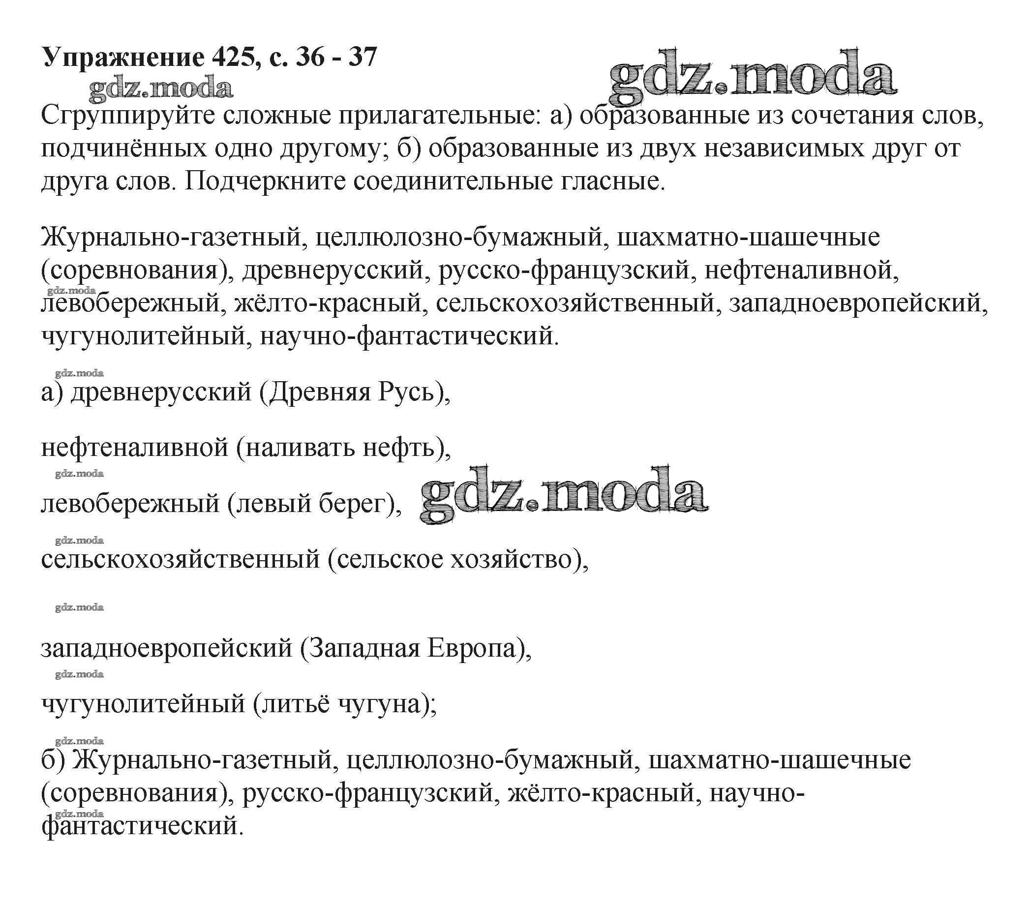 ОТВЕТ на задание № 425 Учебник по Русскому языку 6 класс Баранов