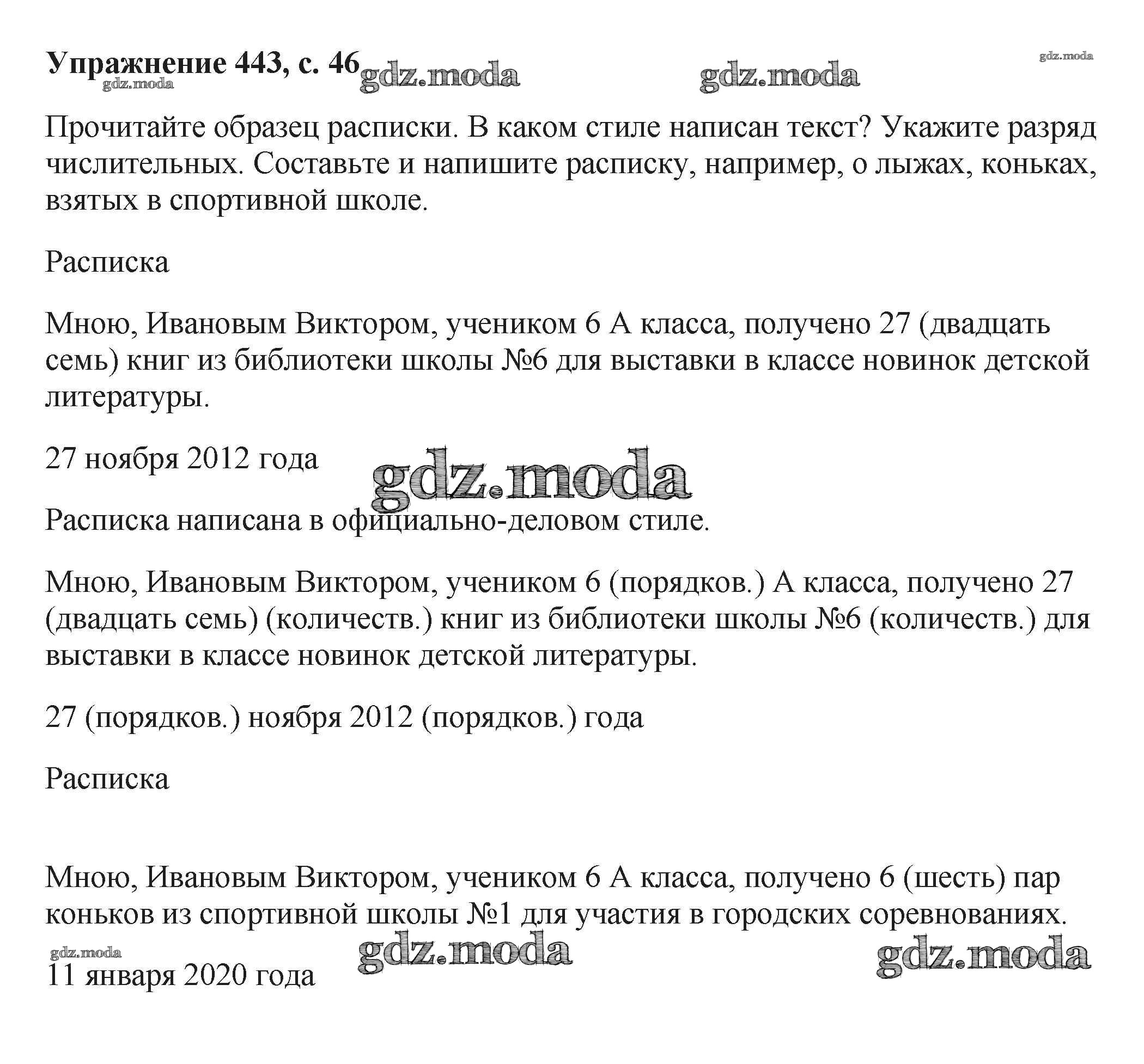ГДЗ решение к заданию № 443 Русский язык 6 класс Баранов М.Т. Просвещение, Просвещение 2015, 2022 Часть 1, Часть 2 ФГОС бесплатно на гдз.мода!