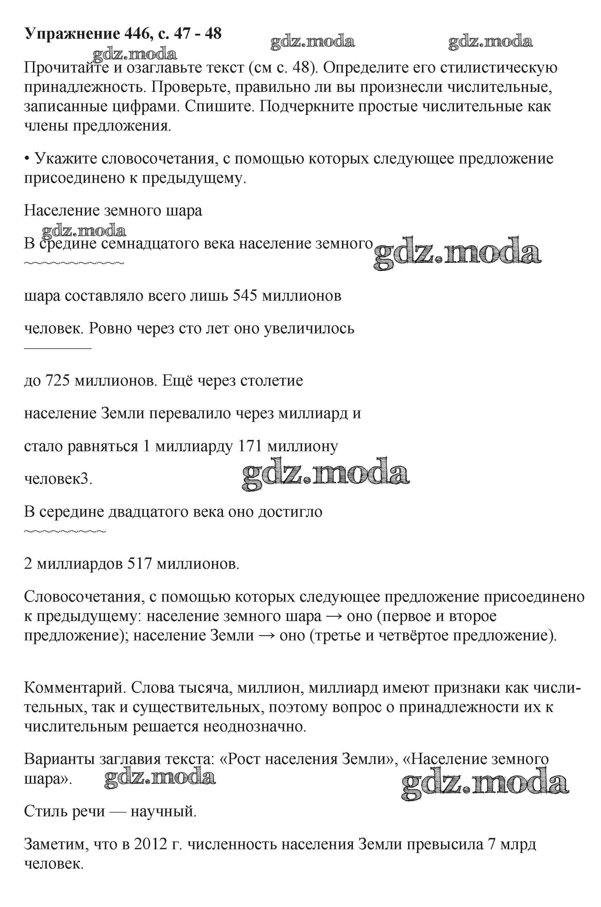 ГДЗ решение к заданию № 446 Русский язык 6 класс Баранов М.Т. Просвещение, Просвещение 2015, 2022 Часть 1, Часть 2 ФГОС бесплатно на гдз.мода!