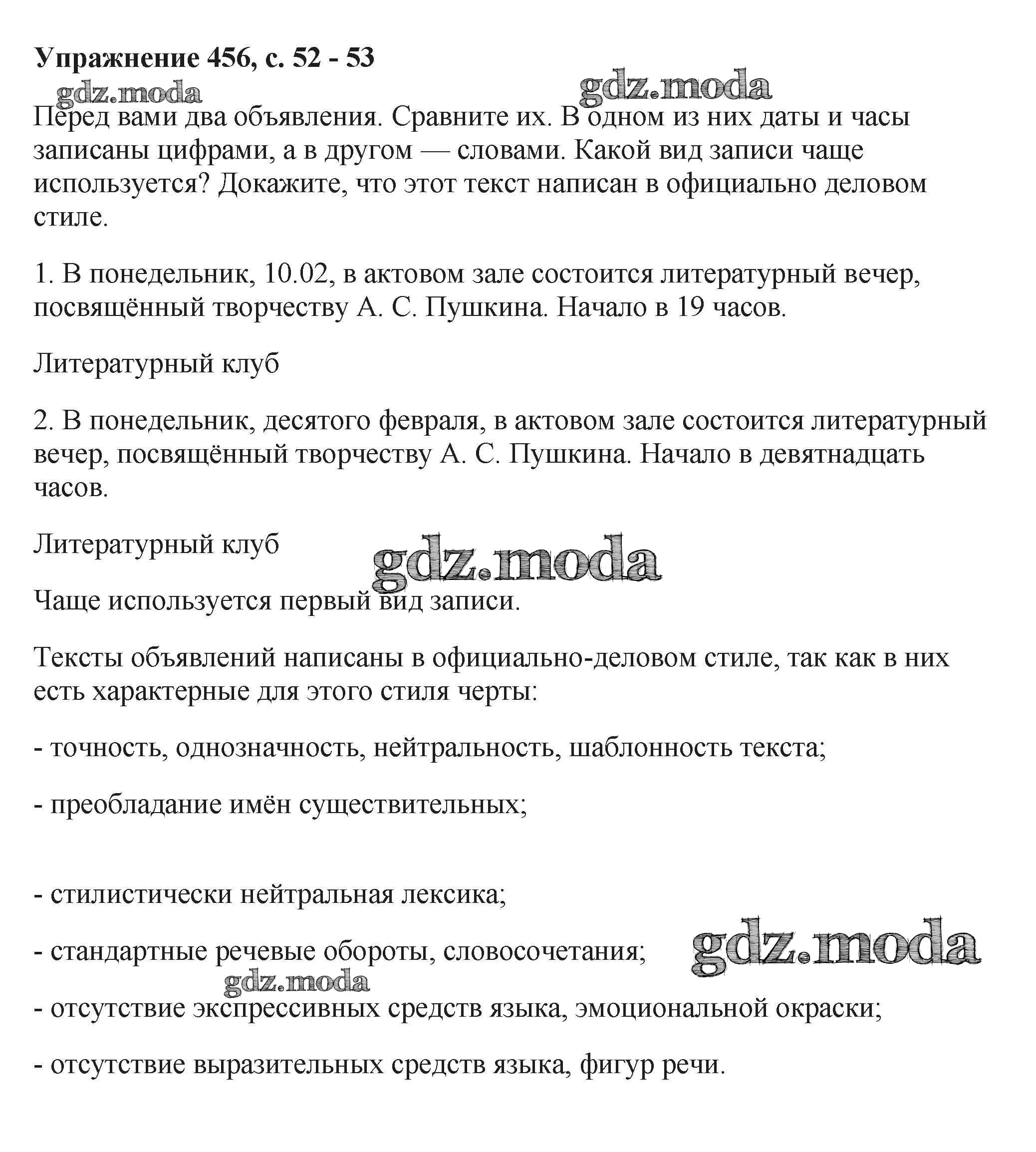 ОТВЕТ на задание № 456 Учебник по Русскому языку 6 класс Баранов