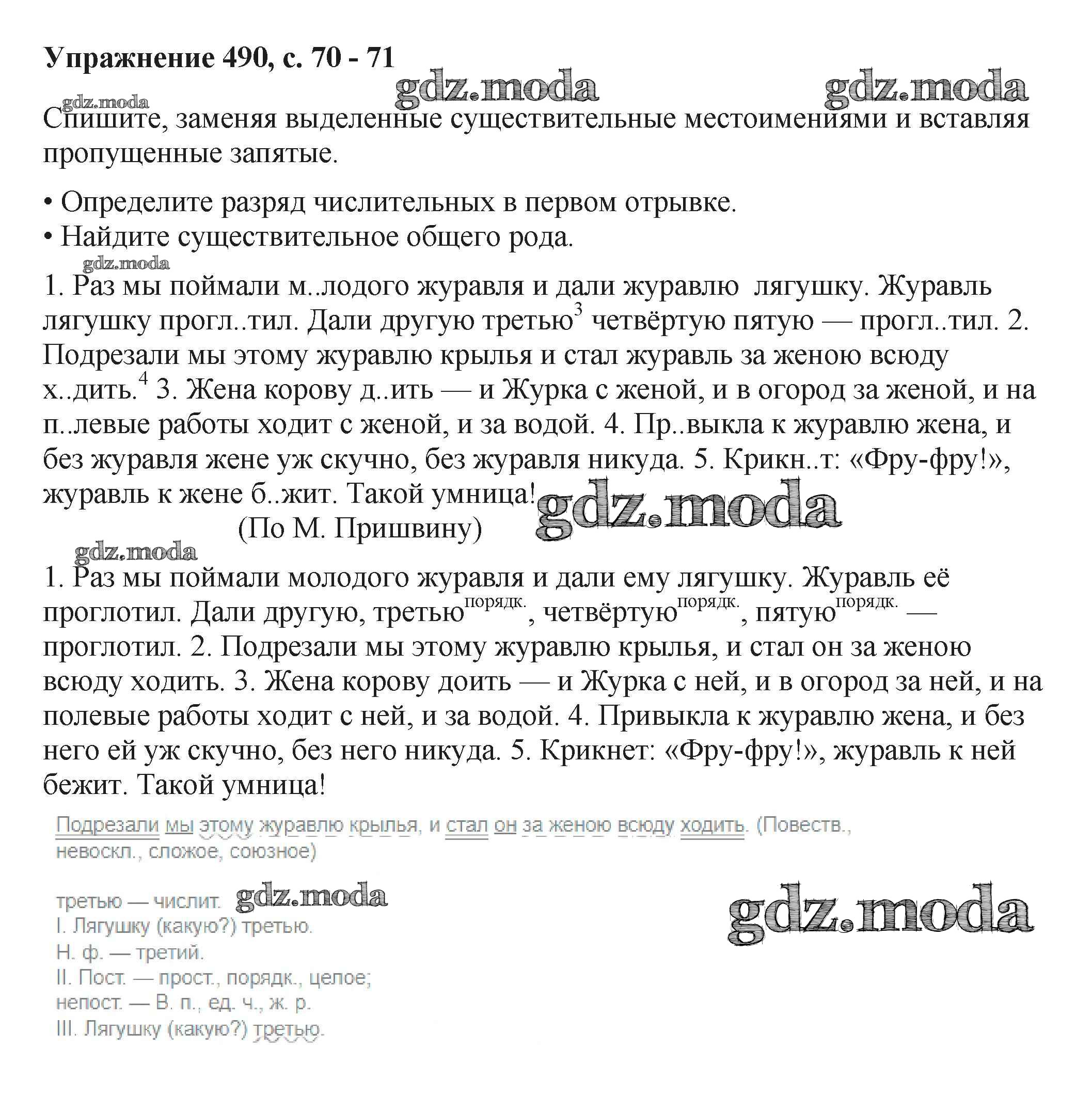 ОТВЕТ на задание № 490 Учебник по Русскому языку 6 класс Баранов