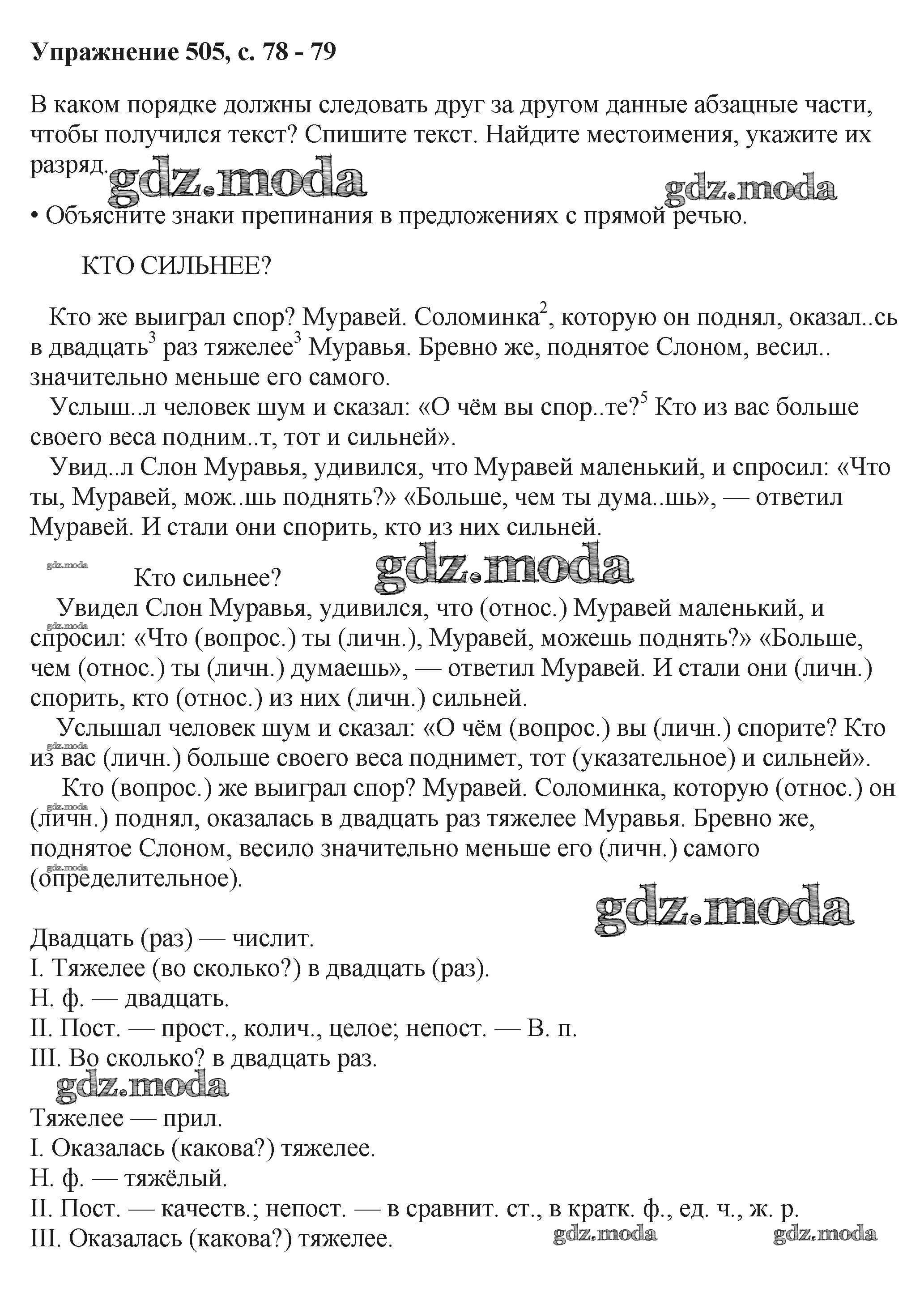 ГДЗ решение к заданию № 505 Русский язык 6 класс Баранов М.Т. Просвещение, Просвещение 2015, 2022 Часть 1, Часть 2 ФГОС бесплатно на гдз.мода!