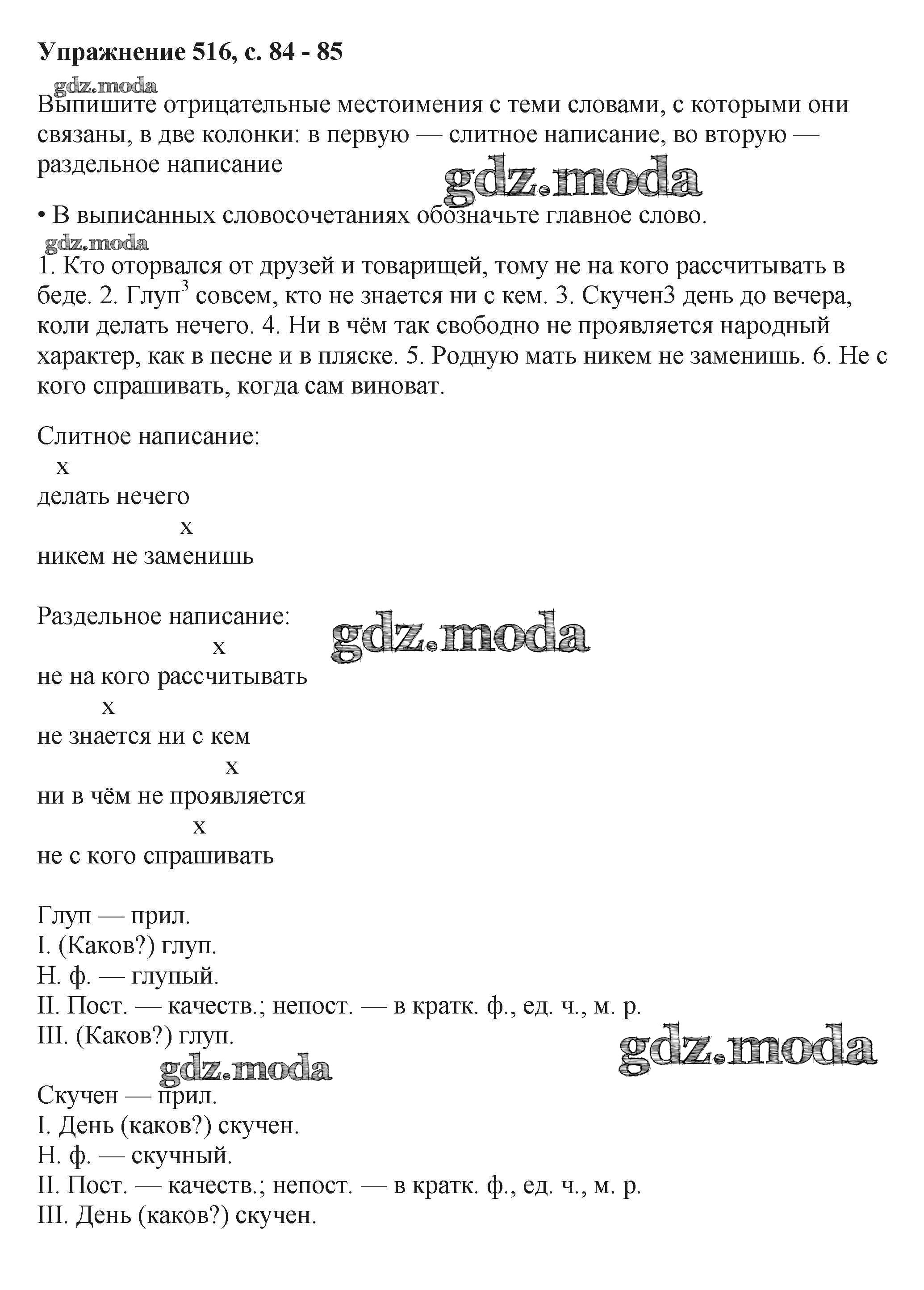 ГДЗ решение к заданию № 516 Русский язык 6 класс Баранов М.Т. Просвещение, Просвещение 2015, 2022 Часть 1, Часть 2 ФГОС бесплатно на гдз.мода!