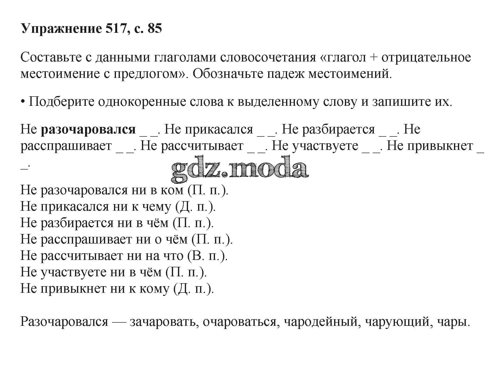 ОТВЕТ на задание № 517 Учебник по Русскому языку 6 класс Баранов
