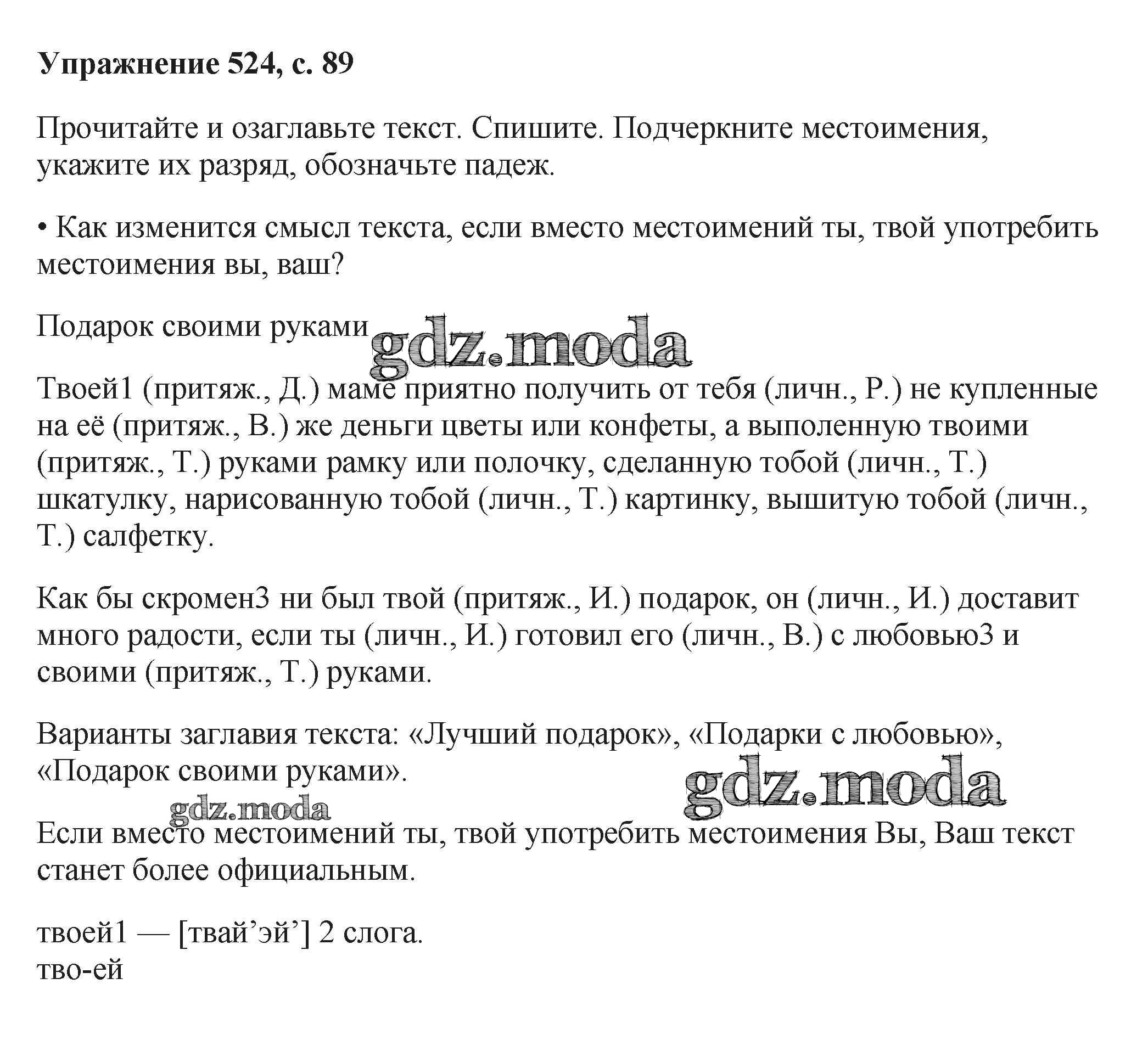 ГДЗ решение к заданию № 524 Русский язык 6 класс Баранов М.Т. Просвещение, Просвещение 2015, 2022 Часть 1, Часть 2 ФГОС бесплатно на гдз.мода!