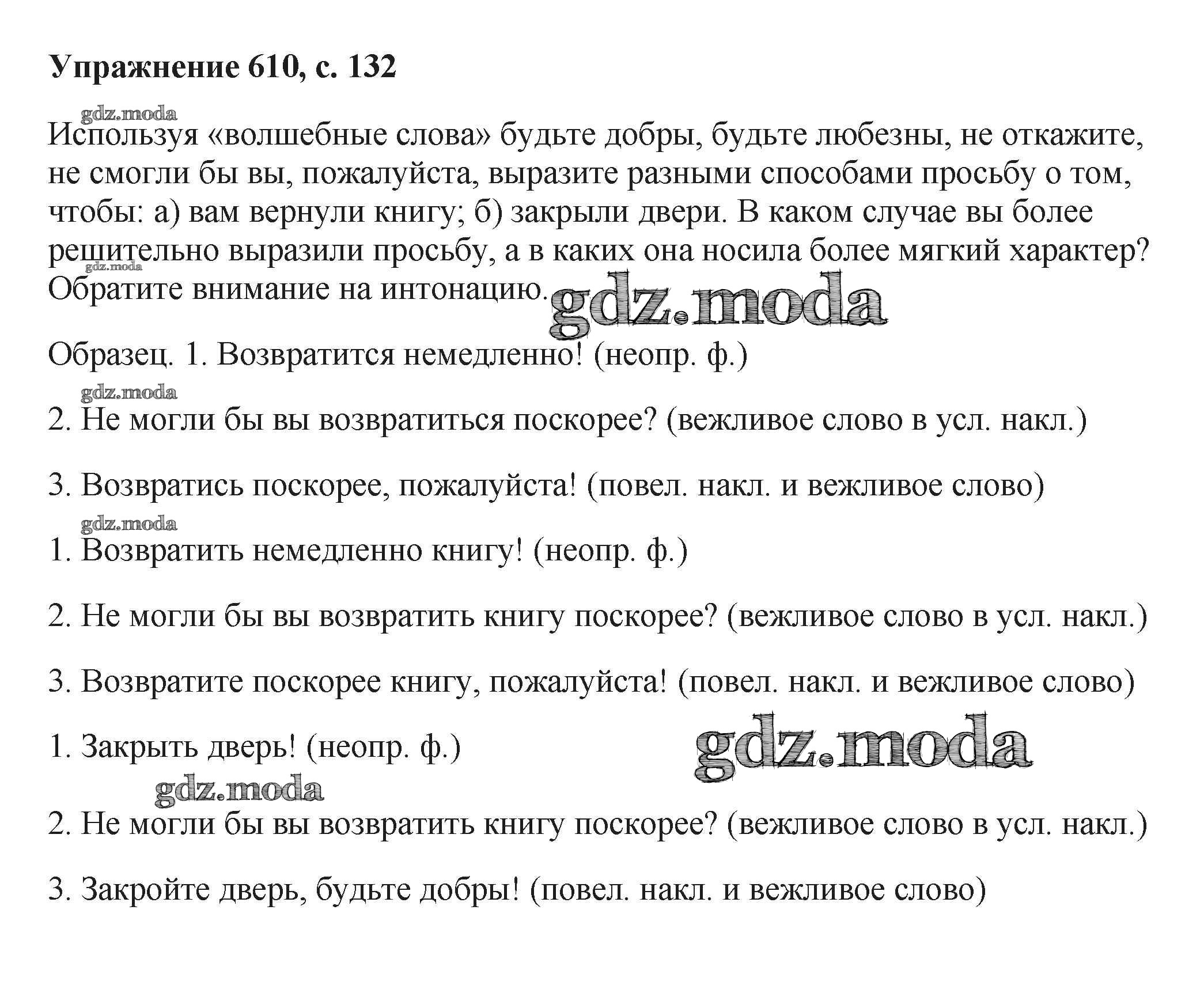 ОТВЕТ на задание № 610 Учебник по Русскому языку 6 класс Баранов