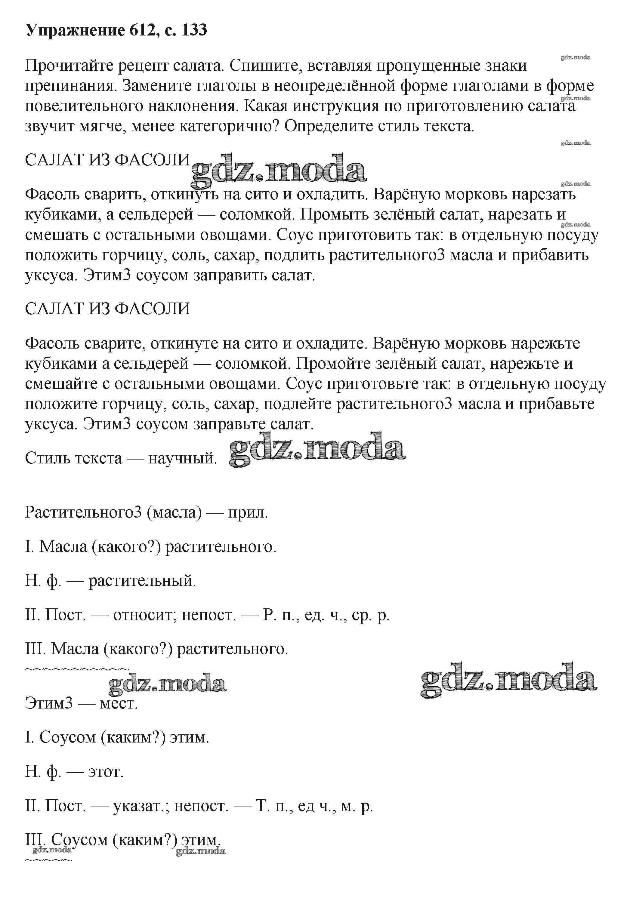 ОТВЕТ на задание № 612 Учебник по Русскому языку 6 класс Баранов