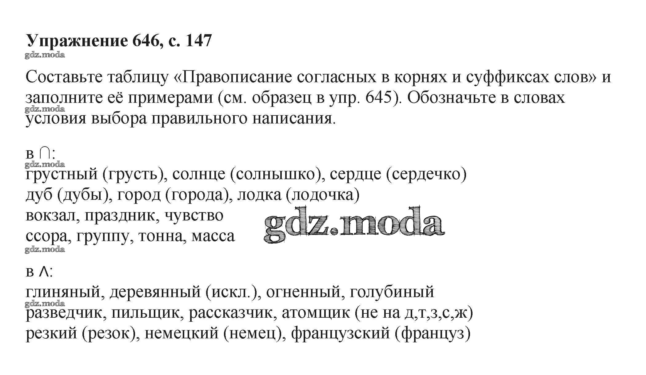 ГДЗ решение к заданию № 646 Русский язык 6 класс Баранов М.Т. Просвещение, Просвещение 2015, 2022 Часть 1, Часть 2 ФГОС бесплатно на гдз.мода!