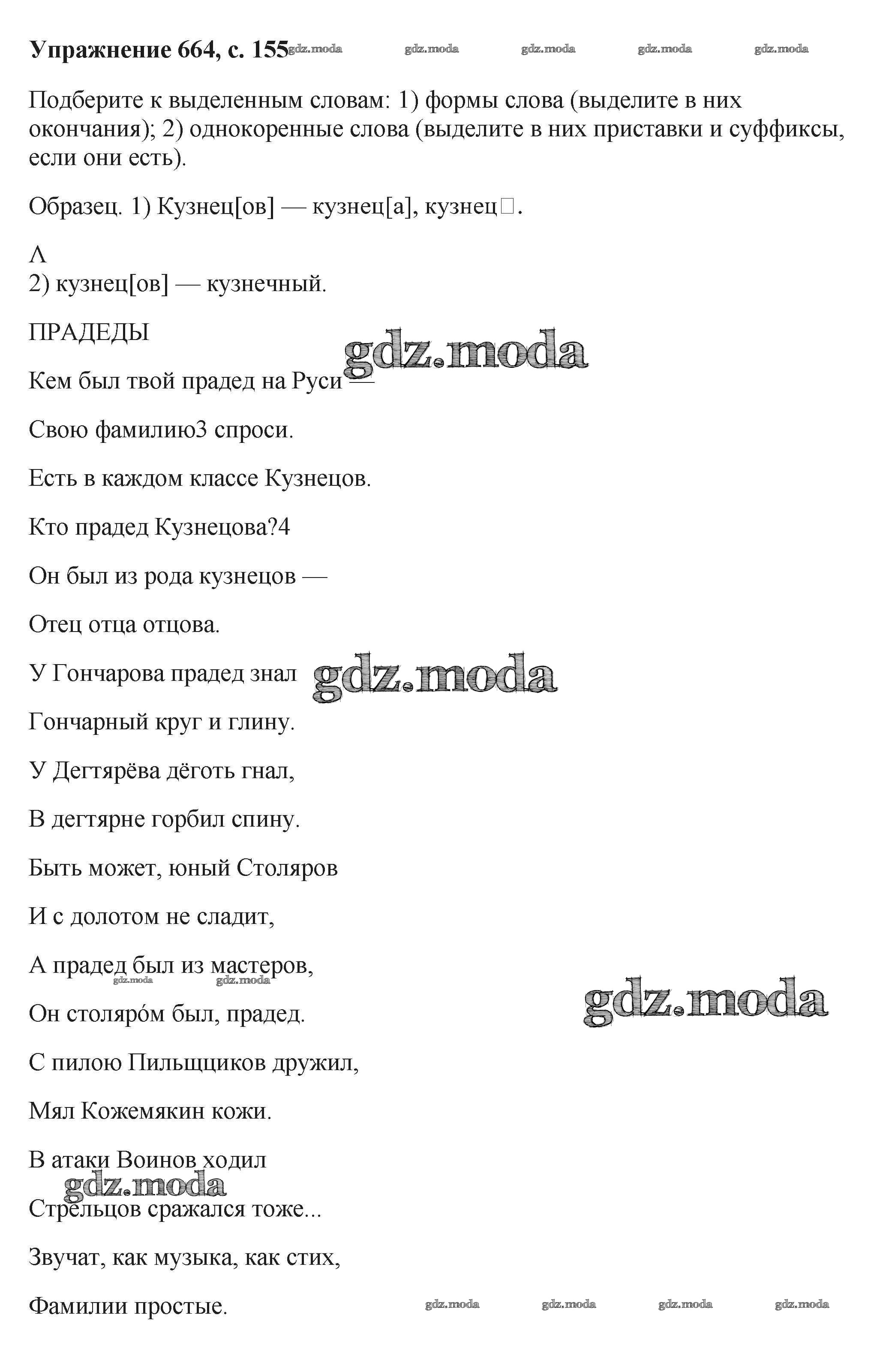 ГДЗ решение к заданию № 664 Русский язык 6 класс Баранов М.Т. Просвещение, Просвещение 2015, 2022 Часть 1, Часть 2 ФГОС бесплатно на гдз.мода!