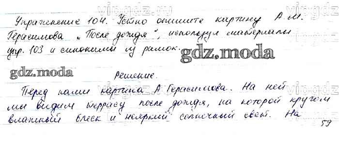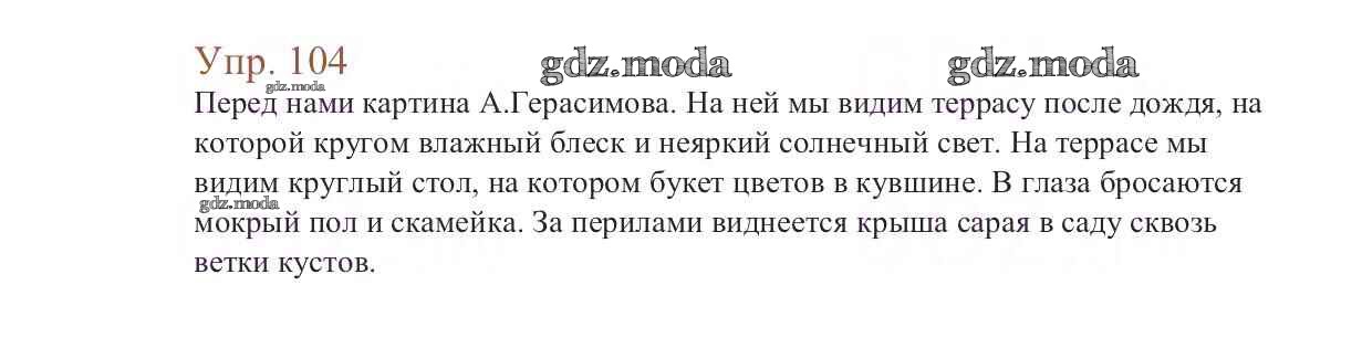 ОТВЕТ на задание № 104 Учебник по Русскому языку 6 класс Баранов