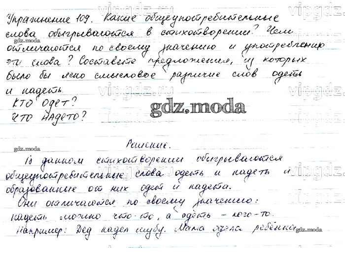 ОТВЕТ на задание № 109 Учебник по Русскому языку 6 класс Баранов