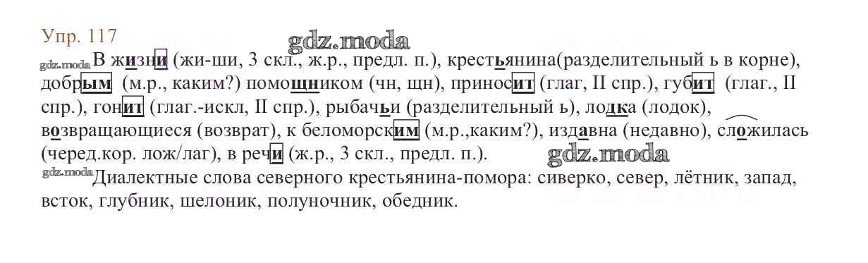 ОТВЕТ на задание № 117 Учебник по Русскому языку 6 класс Баранов