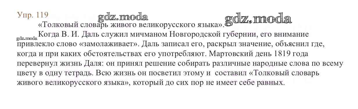 ОТВЕТ на задание № 119 Учебник по Русскому языку 6 класс Баранов