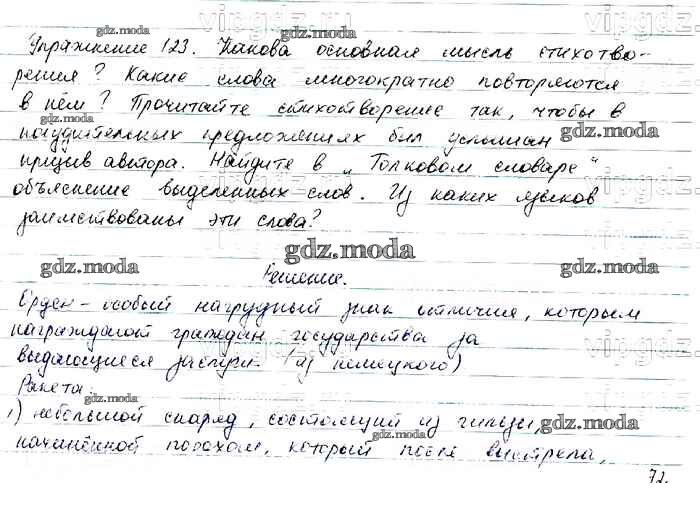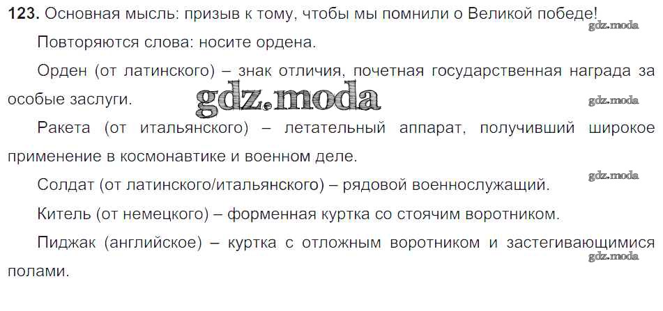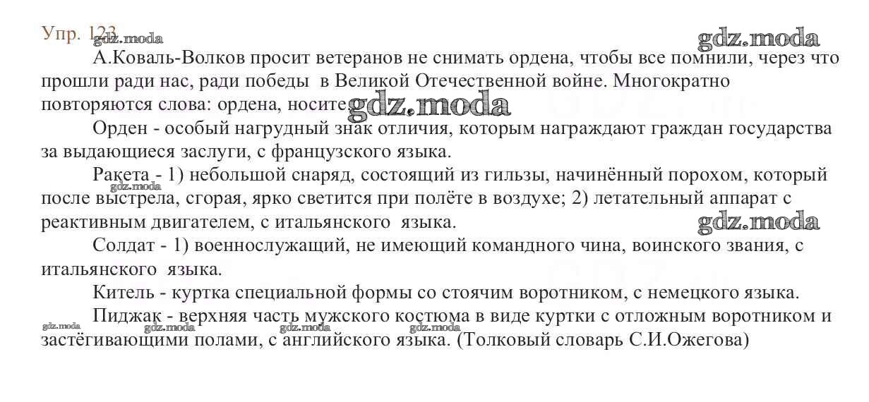 ОТВЕТ на задание № 123 Учебник по Русскому языку 6 класс Баранов