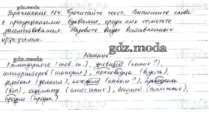 ОТВЕТ на задание № 124 Учебник по Русскому языку 6 класс Баранов