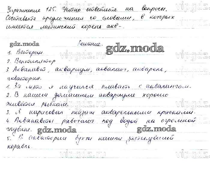 ОТВЕТ на задание № 125 Учебник по Русскому языку 6 класс Баранов