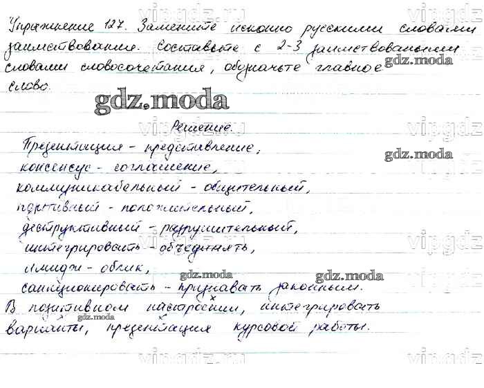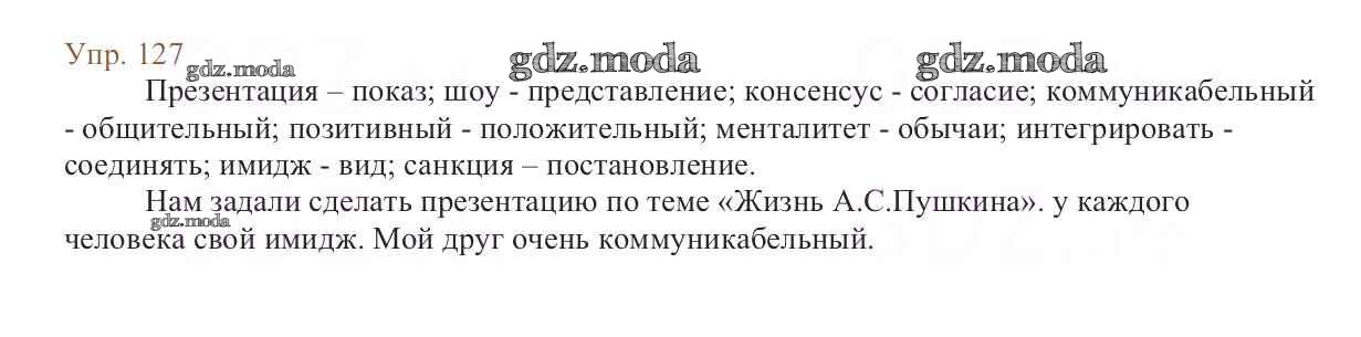 ОТВЕТ на задание № 127 Учебник по Русскому языку 6 класс Баранов