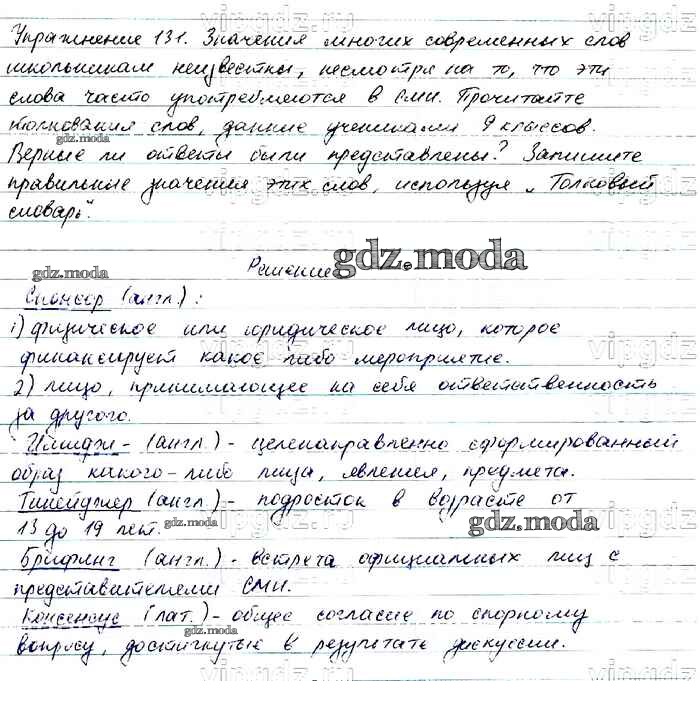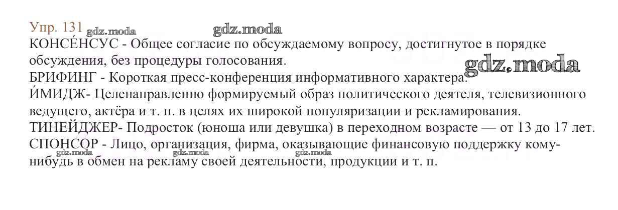 ОТВЕТ на задание № 131 Учебник по Русскому языку 6 класс Баранов