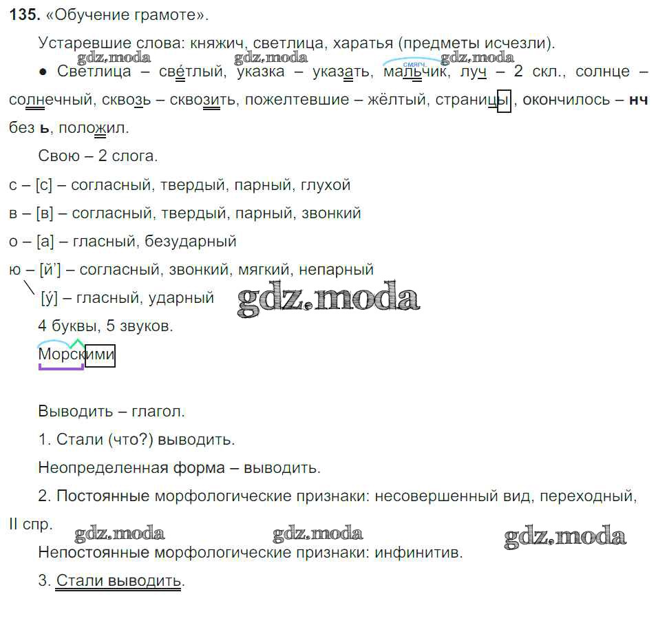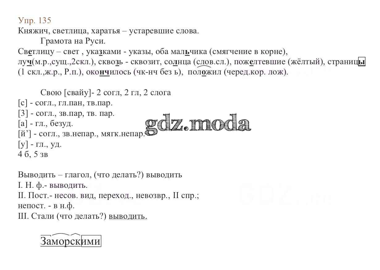 ОТВЕТ на задание № 135 Учебник по Русскому языку 6 класс Баранов