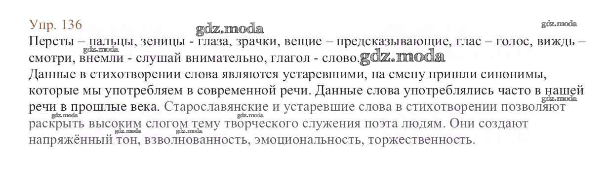 ОТВЕТ на задание № 136 Учебник по Русскому языку 6 класс Баранов
