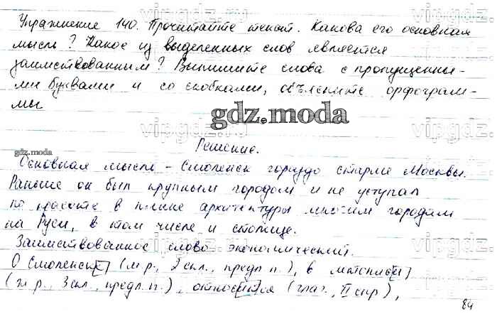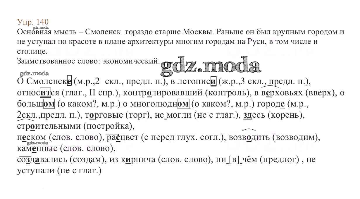 ОТВЕТ на задание № 140 Учебник по Русскому языку 6 класс Баранов