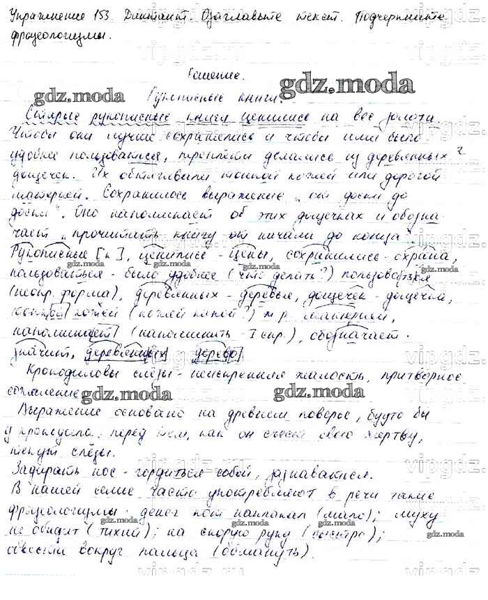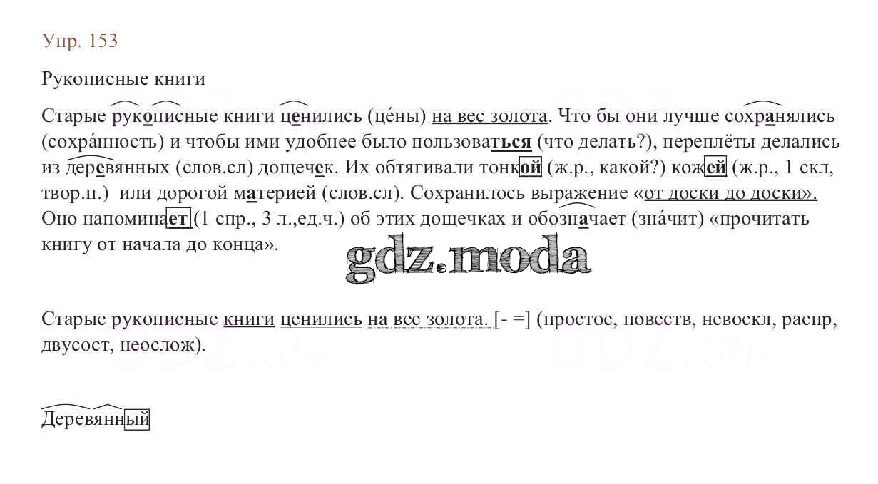 ОТВЕТ на задание № 153 Учебник по Русскому языку 6 класс Баранов