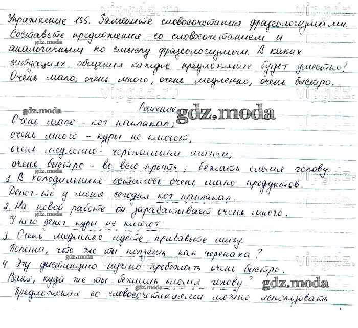 ОТВЕТ на задание № 155 Учебник по Русскому языку 6 класс Баранов