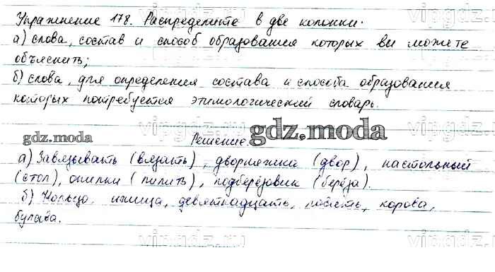 ОТВЕТ на задание № 178 Учебник по Русскому языку 6 класс Баранов
