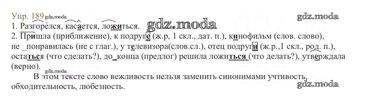 ОТВЕТ на задание № 189 Учебник по Русскому языку 6 класс Баранов