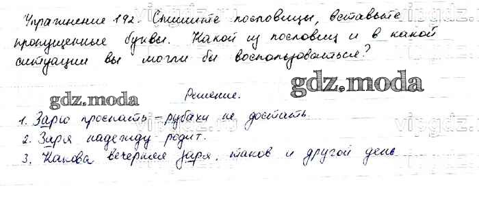 ОТВЕТ на задание № 192 Учебник по Русскому языку 6 класс Баранов