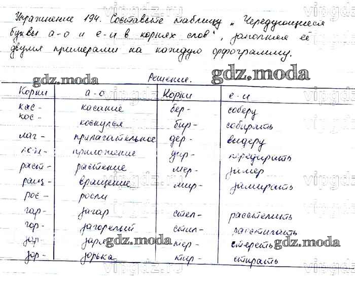 ОТВЕТ на задание № 194 Учебник по Русскому языку 6 класс Баранов