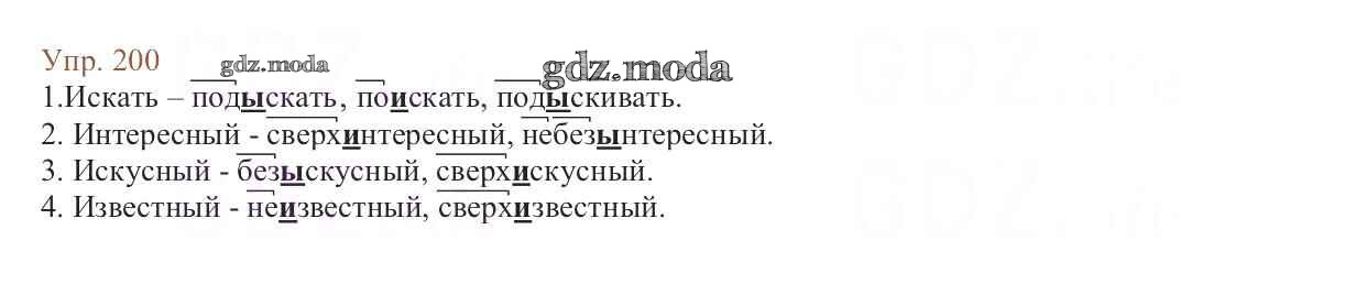 ОТВЕТ на задание № 200 Учебник по Русскому языку 6 класс Баранов
