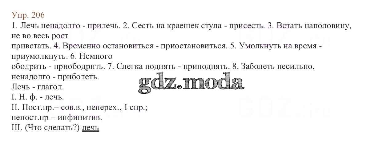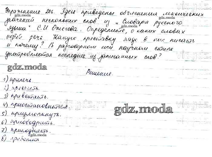 ОТВЕТ на задание № 206 Учебник по Русскому языку 6 класс Баранов
