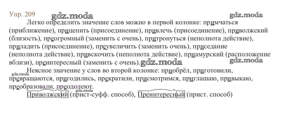ОТВЕТ на задание № 209 Учебник по Русскому языку 6 класс Баранов
