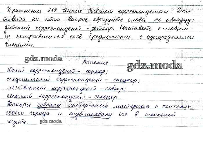 ОТВЕТ на задание № 219 Учебник по Русскому языку 6 класс Баранов