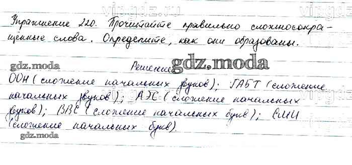ОТВЕТ на задание № 220 Учебник по Русскому языку 6 класс Баранов