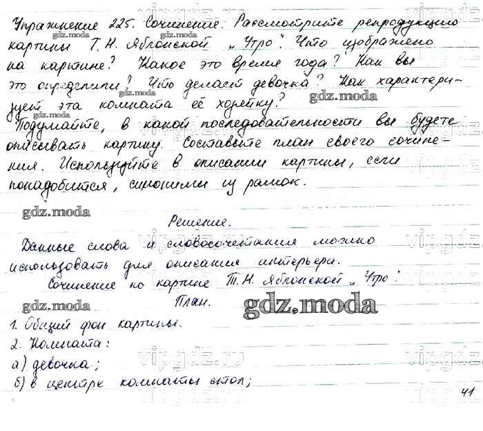 ОТВЕТ на задание № 225 Учебник по Русскому языку 6 класс Баранов