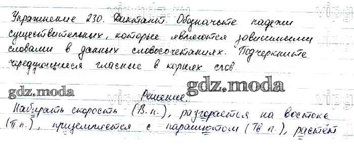 ОТВЕТ на задание № 230 Учебник по Русскому языку 6 класс Баранов