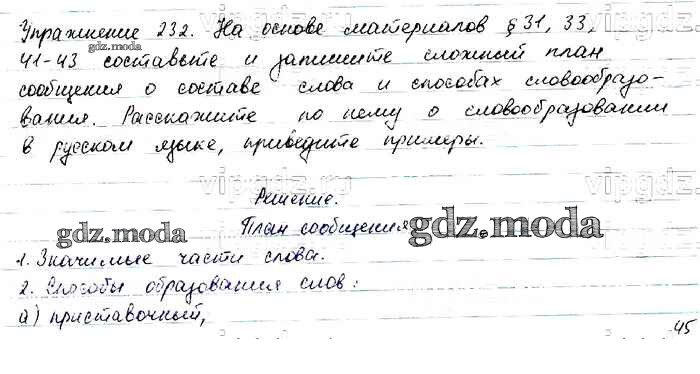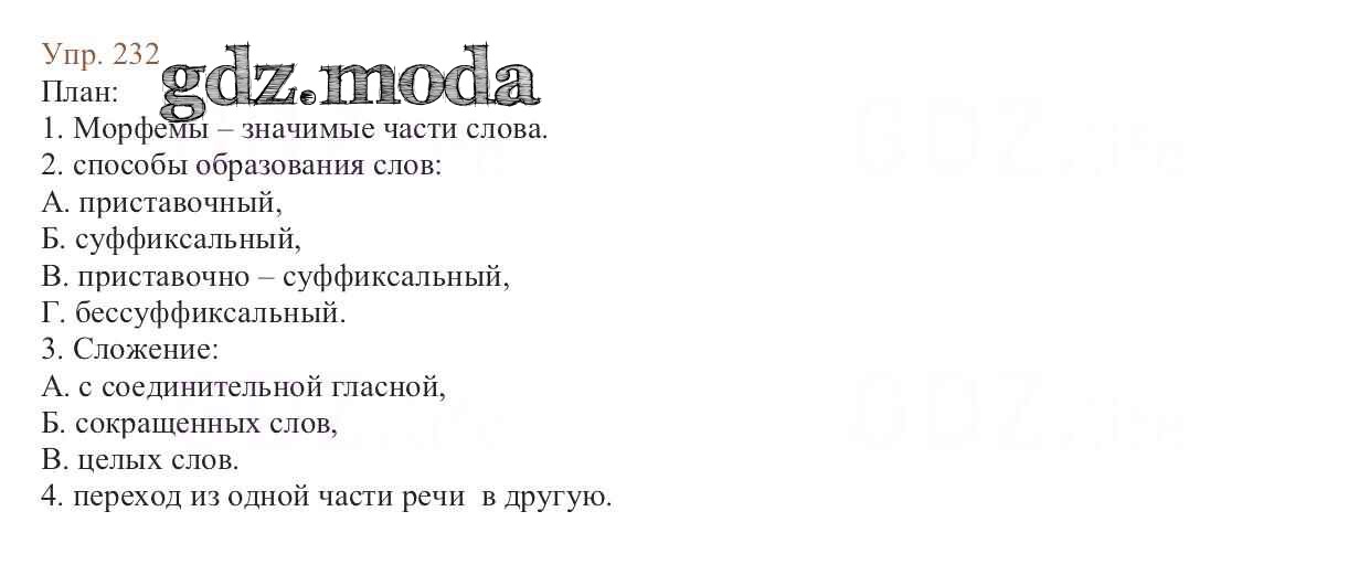 ОТВЕТ на задание № 232 Учебник по Русскому языку 6 класс Баранов