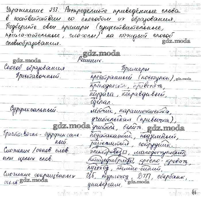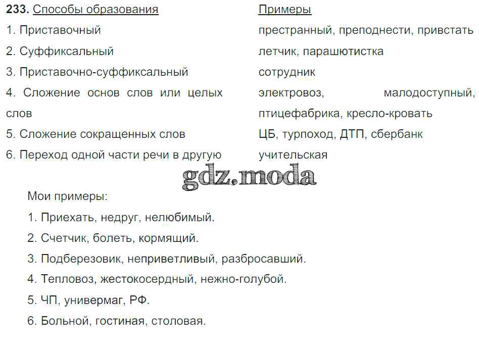 ОТВЕТ на задание № 233 Учебник по Русскому языку 6 класс Баранов