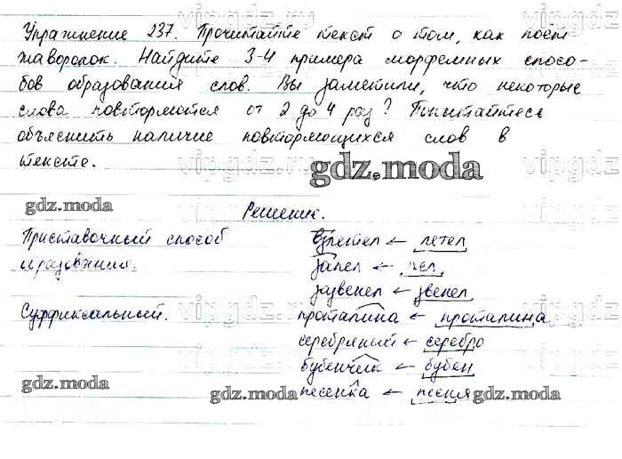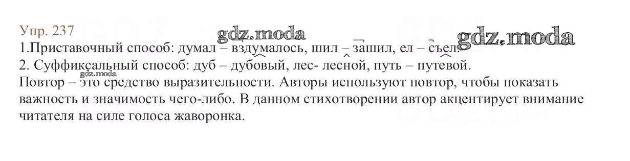 ОТВЕТ на задание № 237 Учебник по Русскому языку 6 класс Баранов