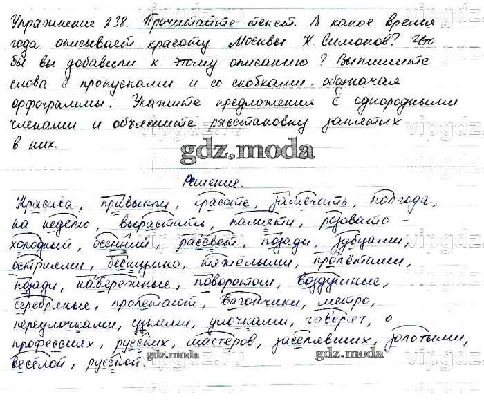 ОТВЕТ на задание № 238 Учебник по Русскому языку 6 класс Баранов