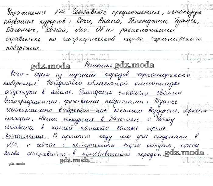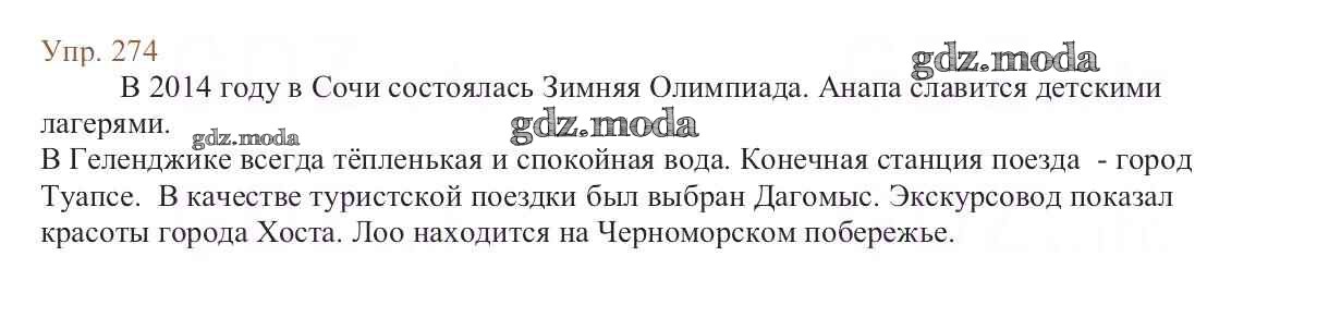 ОТВЕТ на задание № 274 Учебник по Русскому языку 6 класс Баранов
