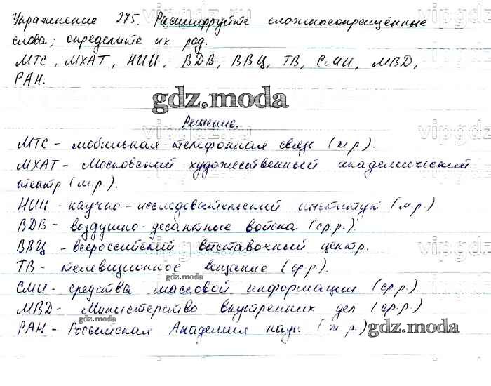 ОТВЕТ на задание № 275 Учебник по Русскому языку 6 класс Баранов