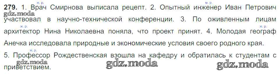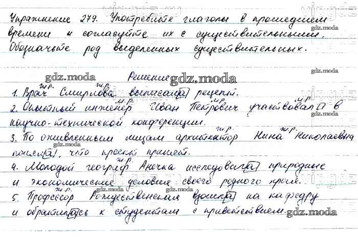 ОТВЕТ на задание № 279 Учебник по Русскому языку 6 класс Баранов