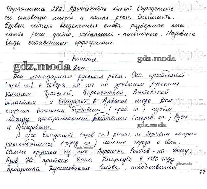 ОТВЕТ на задание № 282 Учебник по Русскому языку 6 класс Баранов
